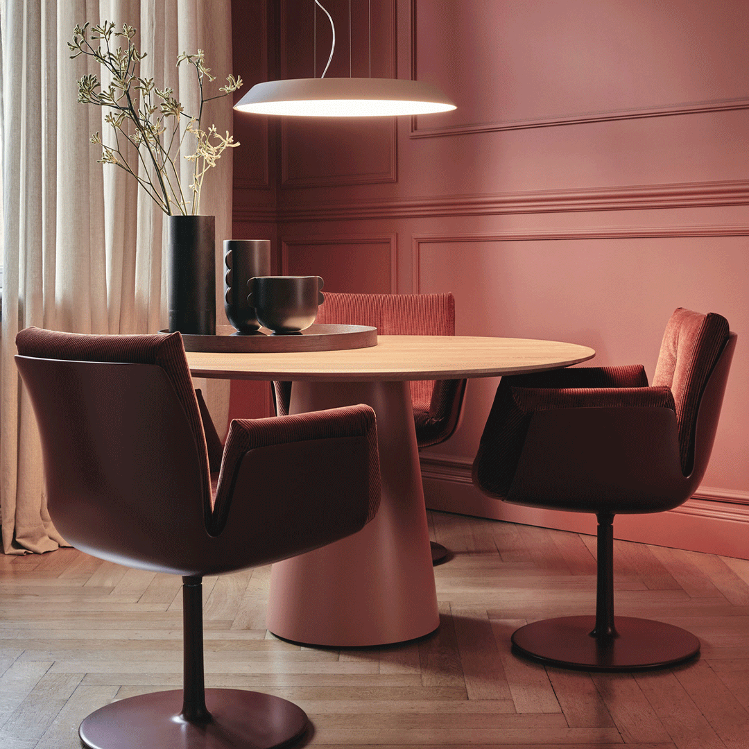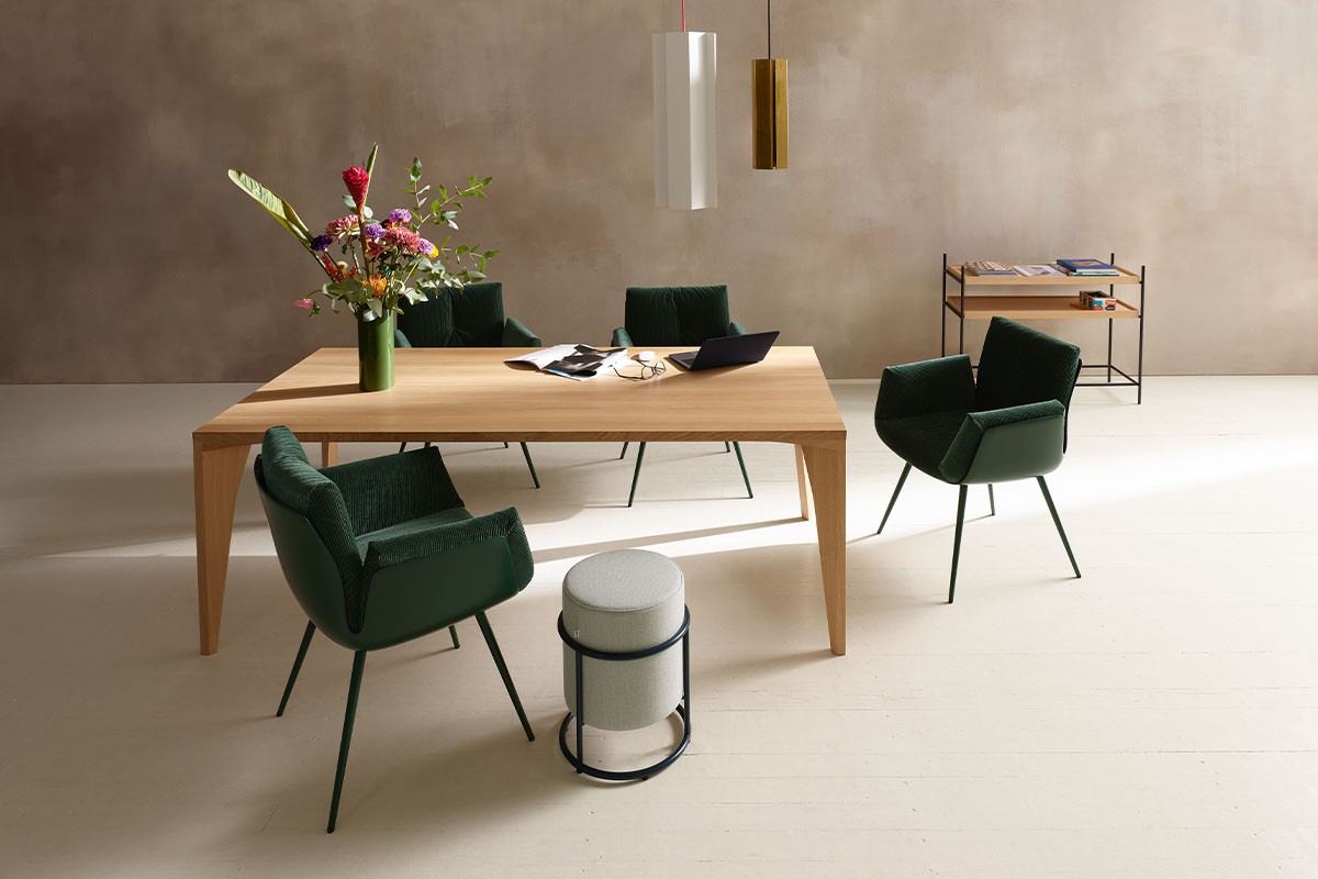 De Alvo stoel bewijst dat u niet hoeft te kiezen tussen comfort en design. Is het een loungestoel of een eetkamerstoel? Het is allebei. Ontwerpers Jehs + Laub creëerden een stoel die voelt als een “zacht bed” aan tafel, waarin u moeiteloos urenlang blijft zitten.