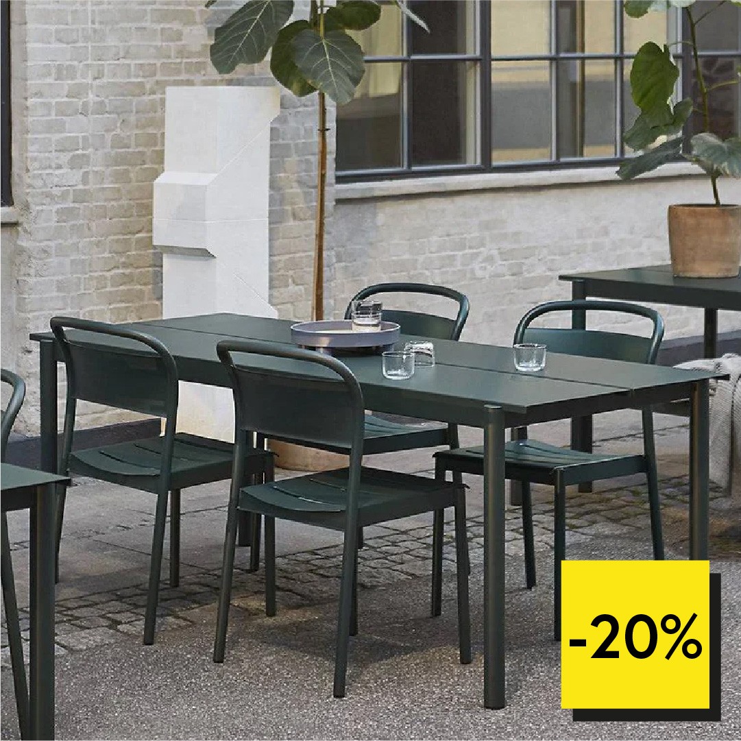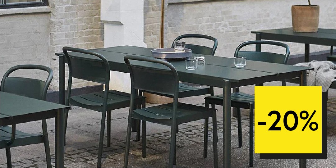Profiteer tijdelijk van 20% korting op de Muuto Linear outdoor serie.