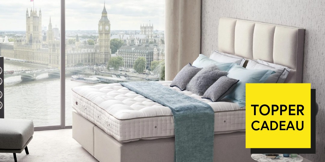 Tot en met 4 mei 2026 ontvangt u een luxe topper cadeau bij aanschaf van een Vispring matras vanaf type Herald of een complete bedset. De waarde van deze topper kan oplopen tot maar liefst €4.700,-.