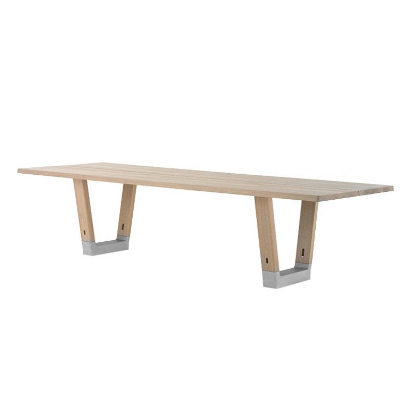 Base is een robuuste eetkamertafel van het merk Arco. Deze tafel heeft een no-nonsense karakter waarbij duurzame materialen als beton en massief hout worden gebruikt. De naam van de tafel verklapt het al: een basisstuk. Aan deze tafel kan geleefd worden dankzij de stevige constructie.