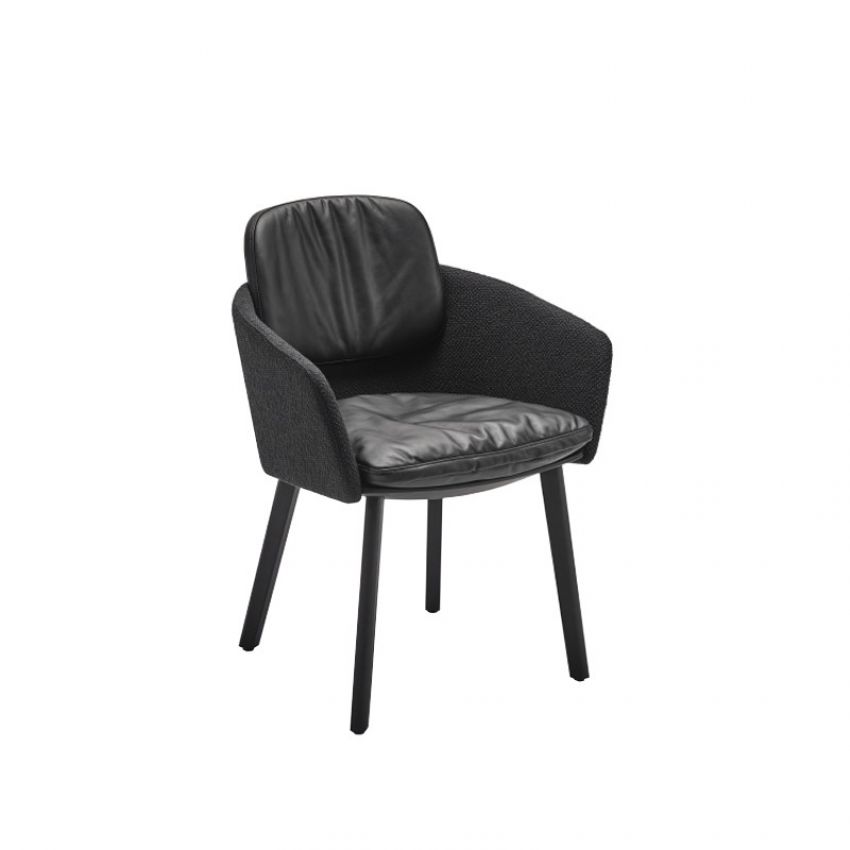 Armstoel Laze is een ontwerp van Gudmundur Ludvik uit 2019 voor het merk Arco. Deze luxe eetkamerstoel staat volledig in het teken van hoog zitcomfort. Dit is duidelijk terug te vinden in de uitnodigende kussens en het elastische net in de zitting van de Laze.