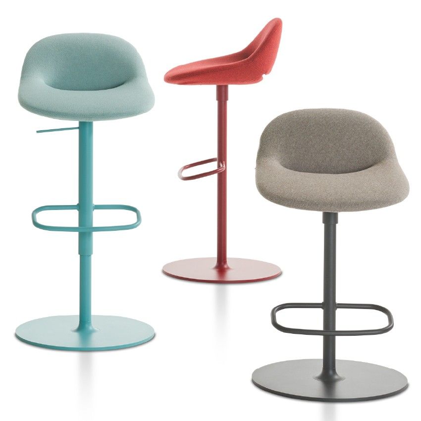 Het onderstel is verkrijgbaar in hout, chroom of gepoedercoat (mat en glans) in een kleur naar keuze. Voor de zitting valt er te kiezen uit en uitgebreid kleuren- en stoffenprogramma, zowel in stof als leder. Als kers op de taart kunnen de Beso barkrukken afgewerkt worden met een verfijnd sierstiksel.