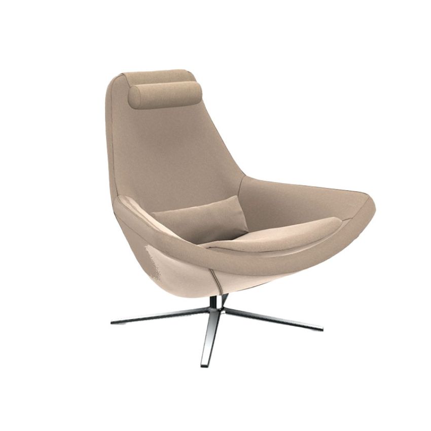 Deze draaifauteuil combineert een verfijnde esthetiek met een aluminium onderstel dat verkrijgbaar is met een vier-spaken basis of een ronde basis, altijd met een subtiel lichte, maar solide uitstraling.