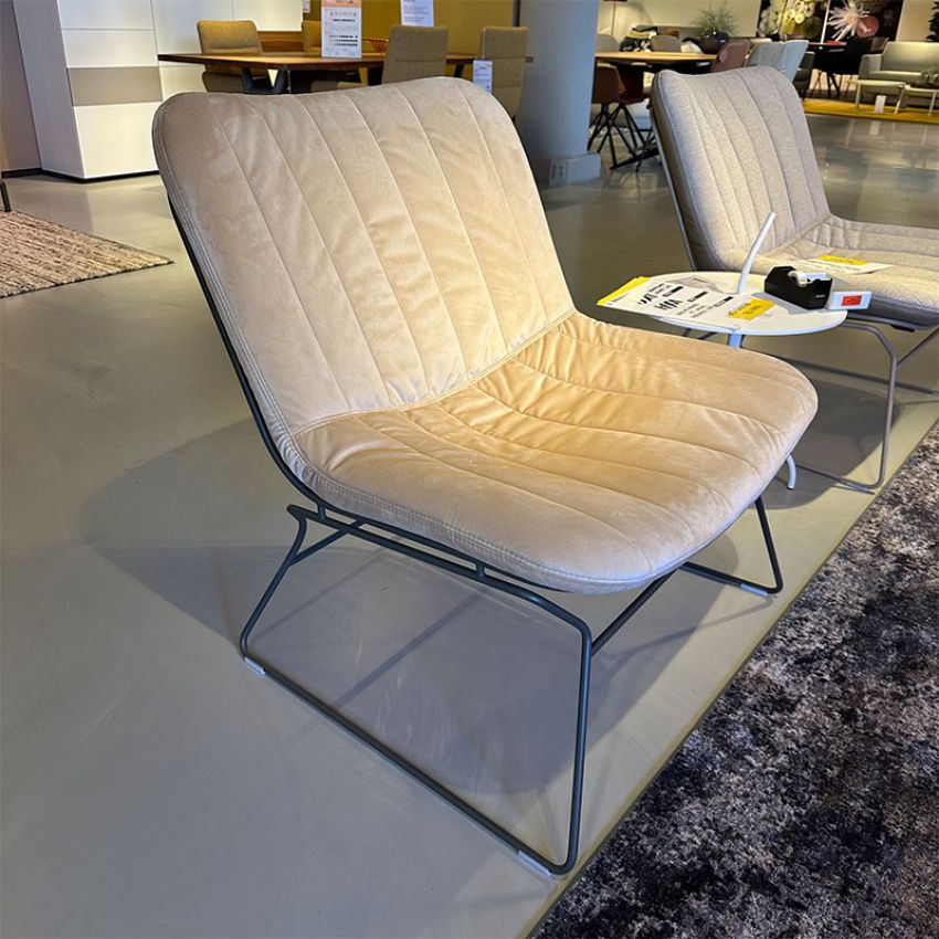 De Bert Plantagie Draat fauteuil is uitgevoerd in de beige stof Hollywood met een umbragrijs frame.