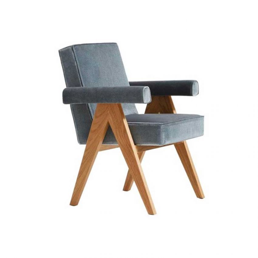 De Cassina Committee Chair armstoel is een ontwerp van architect Pierre Jeanneret (Zwitserland) en maakt deel uit van de collectie ter ere van hem: Hommage à Pierre Jeanneret. Bekend om zijn elegantie en het robuuste frame van massief hout, zijn de armleuningen met zijsteunen in een omgekeerde "V" vorm het icoon van de stoel. Het frame van massief hout vormt een fraai contrast met de gevoerde armleuningen, rugleuning en de comfortabele zitting.