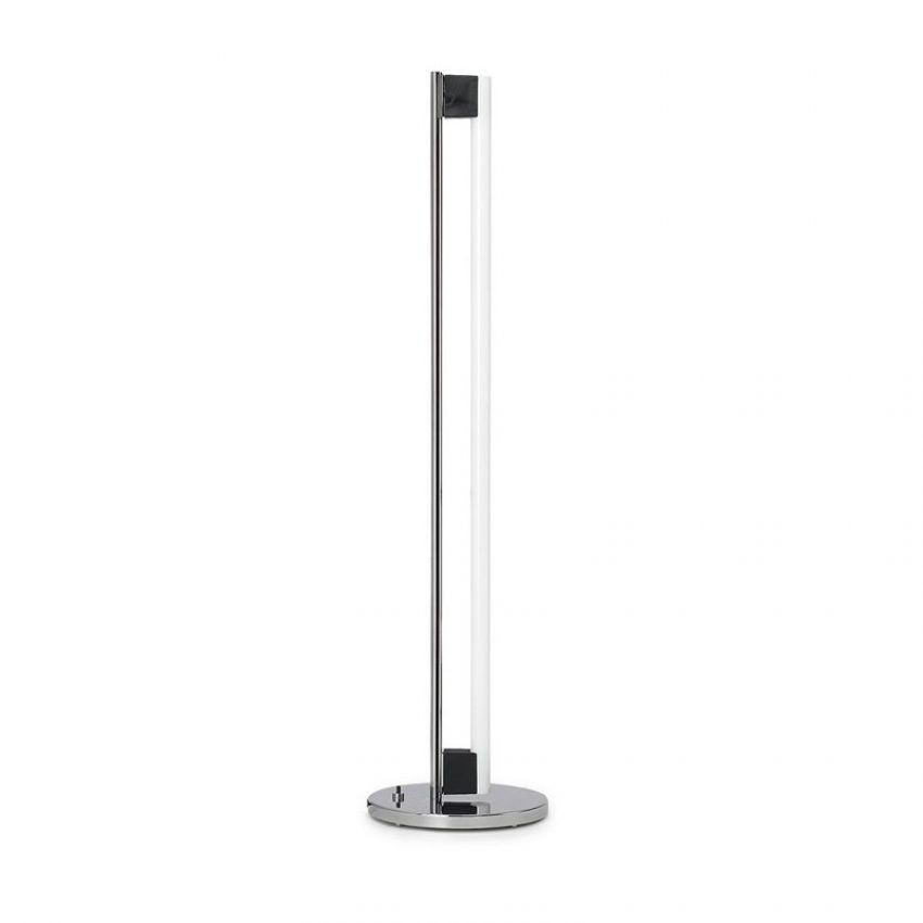 Minimalistische vloerlamp. De Tube Light van Classicon is uitgevoerd met een chromen vloerplaat. Verticaal lichtelement met LED-basis. Ontwerp van Eileen Gray.