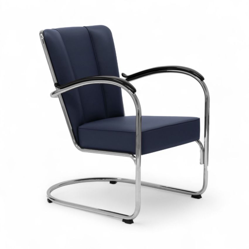 Een van de bekendste modellen uit de collectie van Dutch Originals is de Gispen 412 S fauteuil naar ontwerp van W.H. Gispen. het tweedelige verchroomde buizenframe is handmatig gebogen en maken in combinatie met de herkenbare armleggers uit bakeliet of gelakt beuken de Gispen 412 S compleet. De tijdloze vormgeving van de fauteuil en het uitmuntende zitcomfort zorgen ervoor dat de 412 vandaag de dag nog steeds erg gewild is. De fauteuil is te bestellen in diverse stijlvolle stoffen en luxe ledervarianten uit de collectie van de Nederlandse fabrikant.
