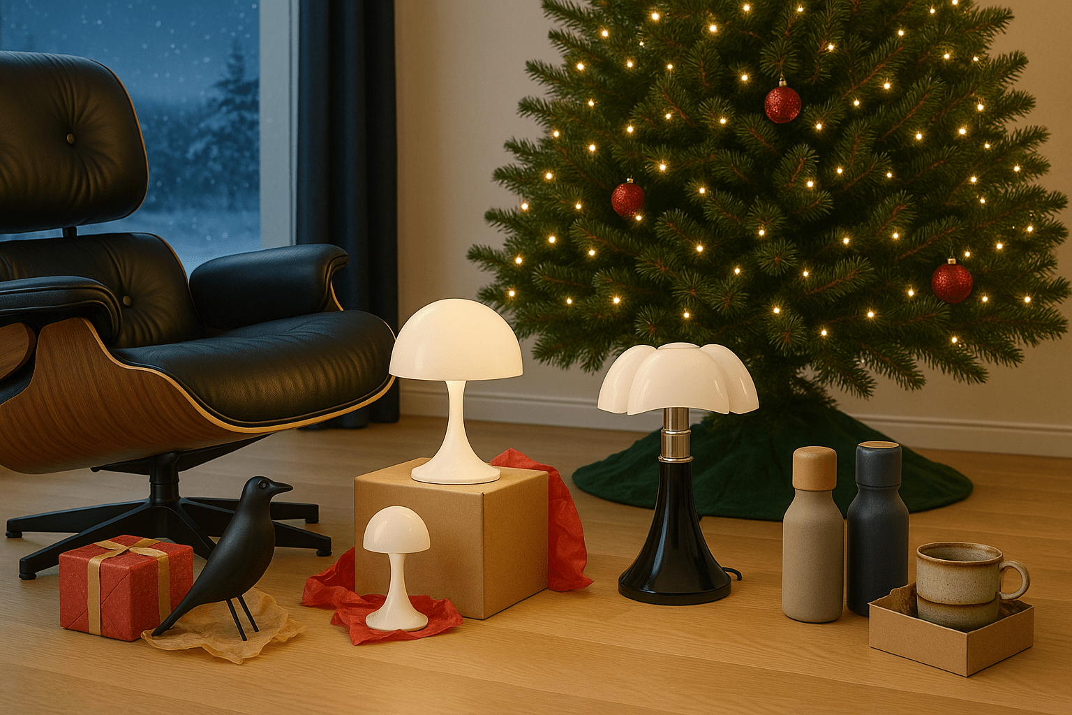 Bij besteding vanaf € 3.000 ontvangt u cadeautegoed voor de aanschaf van mooie cadeau's zoals de House Bird van Vitra, de Panthella van Louis Poulsen of de Pipistrello van Martinelli Luce.