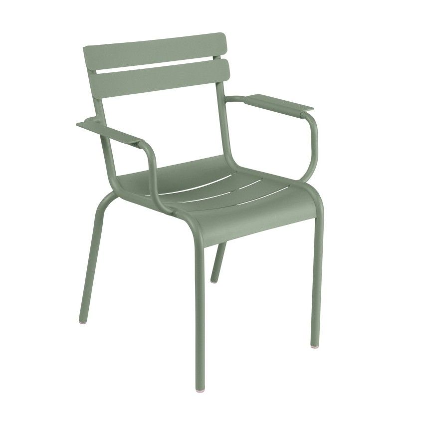 De Luxembourg-collectie van Fermob is een ontwerp van Frédéric Sofia. Deze tuinstoel met armleuningen in de kleur Cactus is vervaardigd van aluminium, waardoor de stoel makkelijk te tillen is en gemakkelijk in onderhoud.
