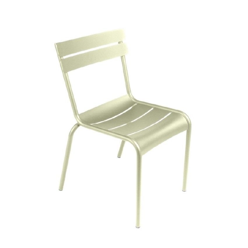 De Luxembourg-collectie van Fermob is een ontwerp van Frédéric Sofia. Deze eetstoel voor buiten in de kleur Willow Green is vervaardigd van aluminium, waardoor de stoel makkelijk te tillen is en gemakkelijk in onderhoud.