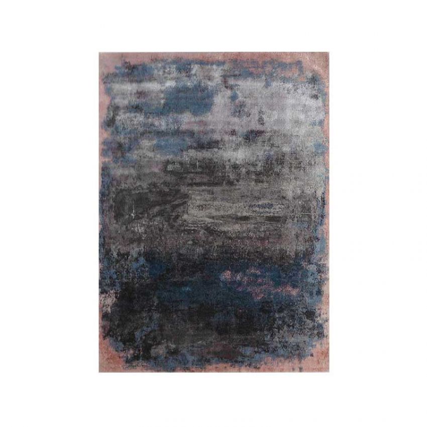 Eén van de fraaie kleden uit de collectie van Framati is de ART 56-3, uitgevoerd in de kleurencombinatie 'Ashwood en Steel Blue'. Dit karpet is handgeknoopt uit een mix van wol, zijde en bamboe.