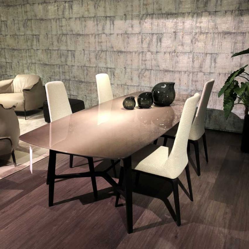 De Giorgetti Blade eettafel is uitgevoerd met een blad dat met de hand is gelakt in de kleur Grigio Antracite.