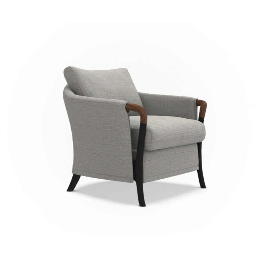 Fauteuil Peggy uit de collectie van de Italiaanse fabrikant Giorgetti heeft een opvallende uitstraling. Zo is de Peggy voorzien van opvallende details van beuken en een comfortabel rugkussen. De Peggy is leverbaar in diverse kleuren stof of leder naar keuze. Afmeting: 82x81x78 cm.