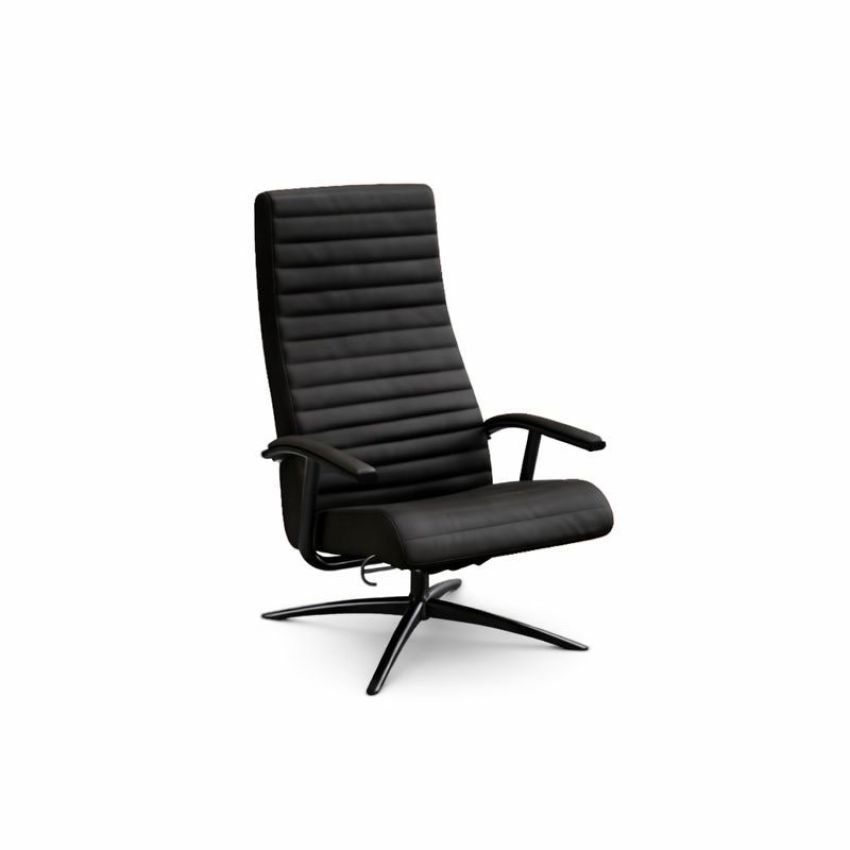 De Havana 2.0. fauteuil en hocker zijn uitgevoerd in het zwarte leder Balder in combinatie met een onderstel in zwart aluminium. De fauteuil heeft een verstelbare hoofdsteun.