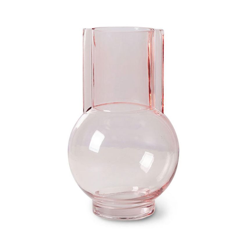 De HK Living Glass Sundea Pink vaas brengt kleur en elegantie in elke ruimte. Het zachte roze glas en de speelse vorm geven je interieur een frisse, moderne uitstraling. Perfect als accent op een dressoir of eettafel, maar ook prachtig met een bos droogbloemen of enkele statement takken.