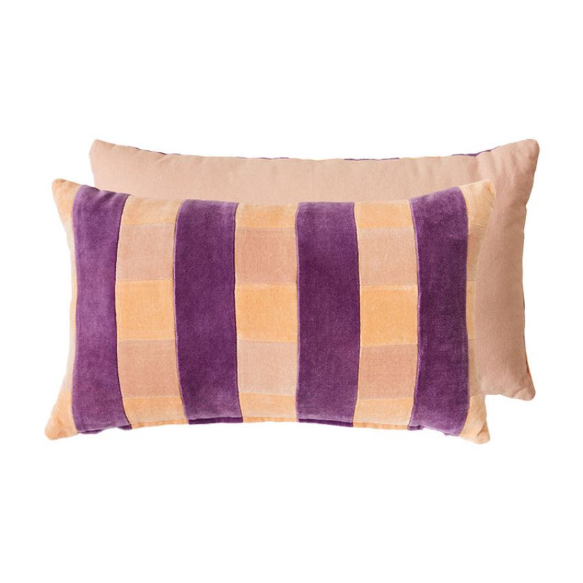 Het kussen voegt direct comfort en karakter toe aan je interieur. Door het grafische streepdessin en de subtiele glans van het fluweel laat het kussen zich mooi combineren met effen kussens of andere texturen uit de HKLIVING collectie.