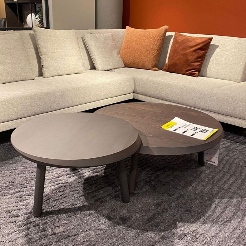 Set IJcoon Kelp bestaande uit twee salontafels van 70 cm en 90 cm doorsnede uitgevoerd in eikenhout.