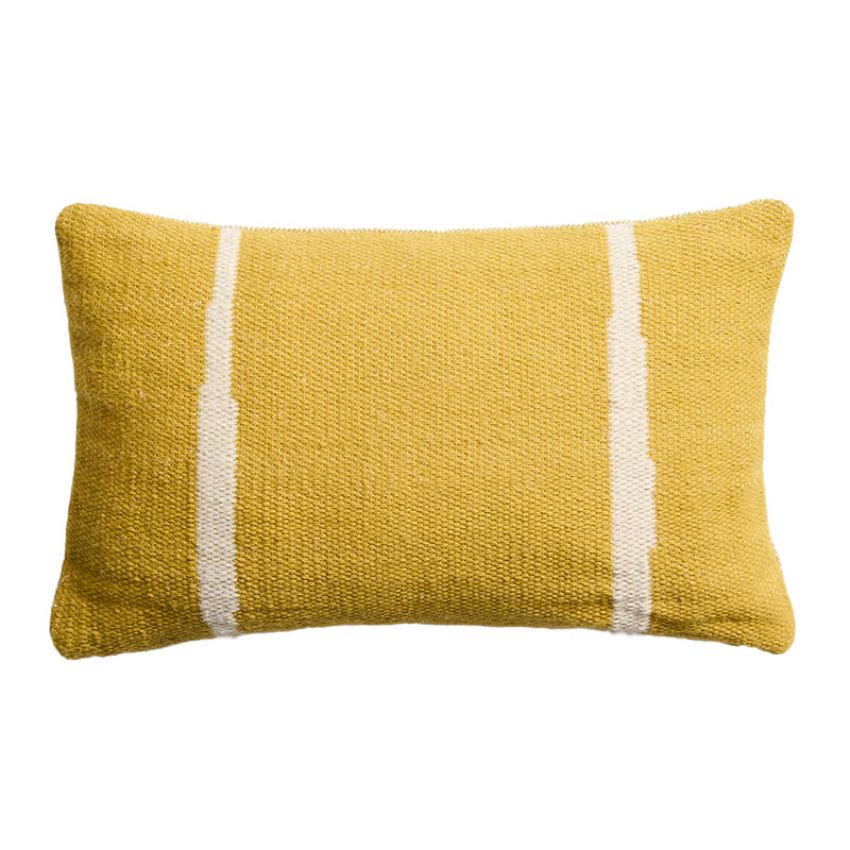 De Daila kussenhoes geel van Kave Home is gemaakt van 100% PET-vezels, een duurzaam materiaal afkomstig van gerecyclede flessen. De stof combineert een zachte uitstraling met een hoge slijtvastheid en is eenvoudig te reinigen en te onderhouden, ook bij buitengebruik.