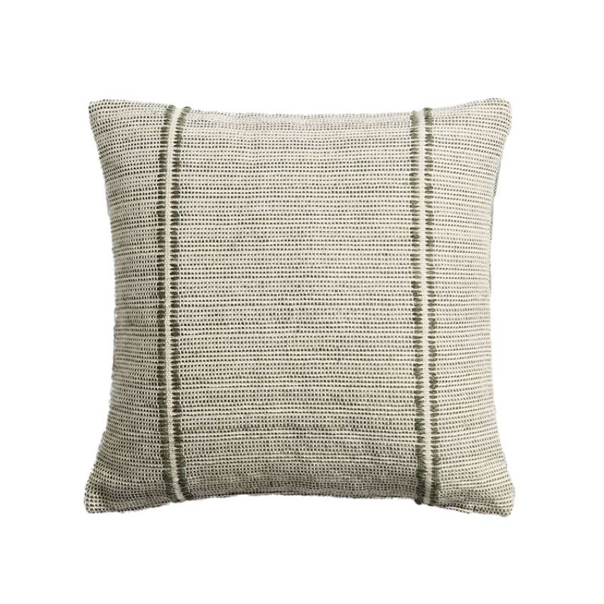 De Drati kussenhoes groen van het merk Kave Home combineert duurzaamheid met een zachte, comfortabele uitstraling. De hoes is vervaardigd uit 100% PET vezels, afkomstig van gerecyclede flessen, en voelt aangenaam aan.
