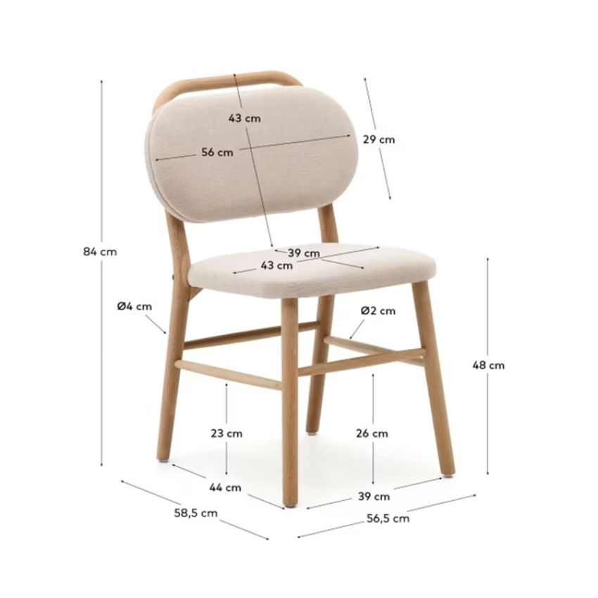 De Kave Home Helda eetstoel combineert vakmanschap, comfort en stijl in één elegant ontwerp. Handgemaakt van massief eikenhout met de stoombuigtechniek, biedt de stoel duurzaamheid en een verfijnde uitstraling. De rugleuning en zitting zijn bekleed met waterafstotend chenille, wat niet alleen comfort biedt maar ook een trendy en praktische oplossing is voor dagelijks gebruik.