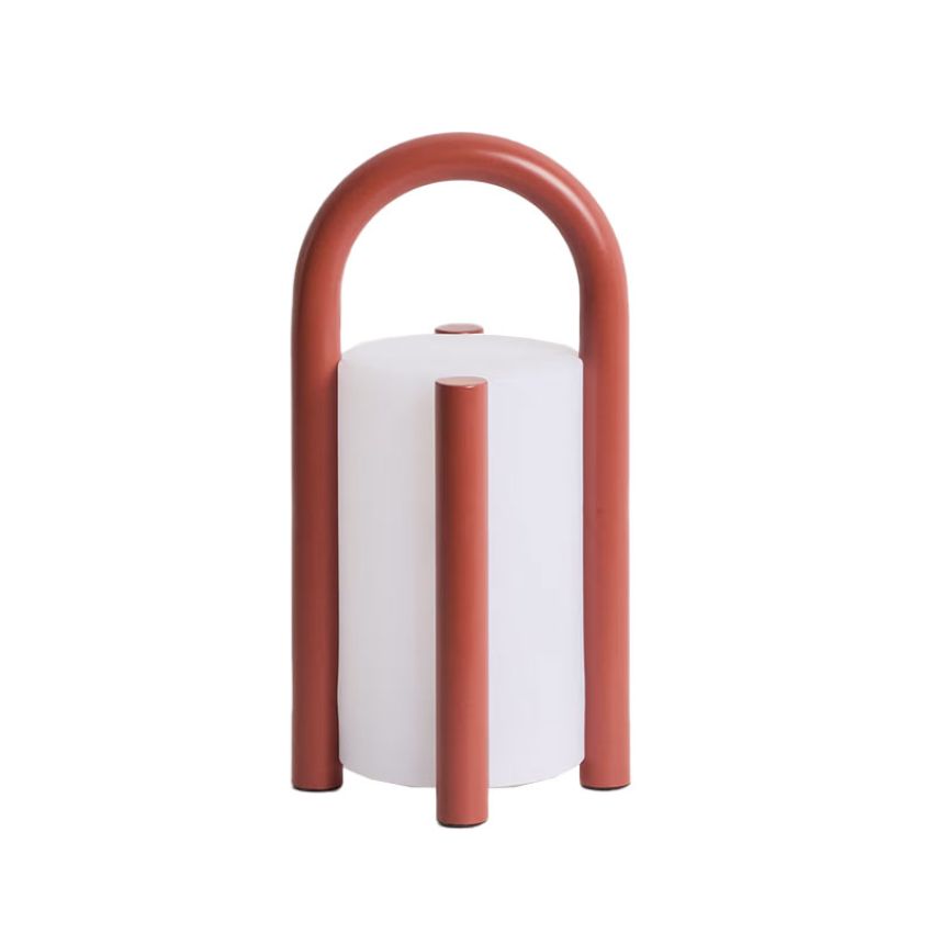 De Leros draagbare buitenlamp van Kave Home combineert een stalen structuur met een polyethyleen diffuser, ontworpen voor een functionele en sfeervolle verlichting in buitenruimtes.