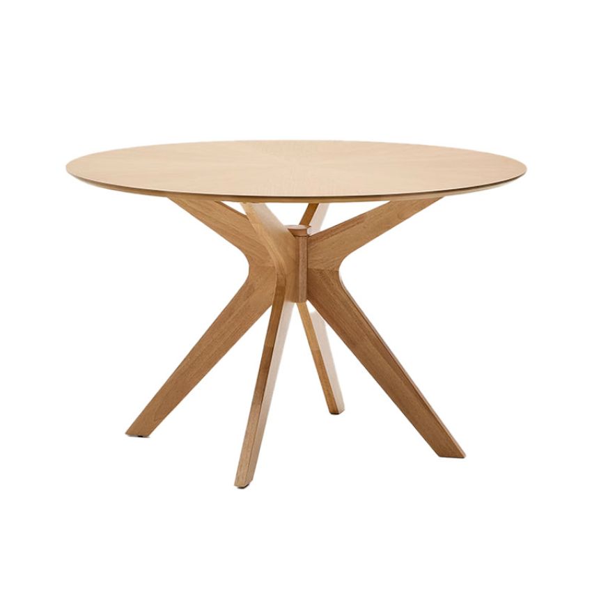 De Kave Home Naanim eettafel is een uniek meubelstuk met een uitgesproken karakter. Elke tafel is vervaardigd van natuurlijk eikenfineer en voorzien van massieve rubberhouten poten, wat zorgt voor stabiliteit en een warme, natuurlijke uitstraling.