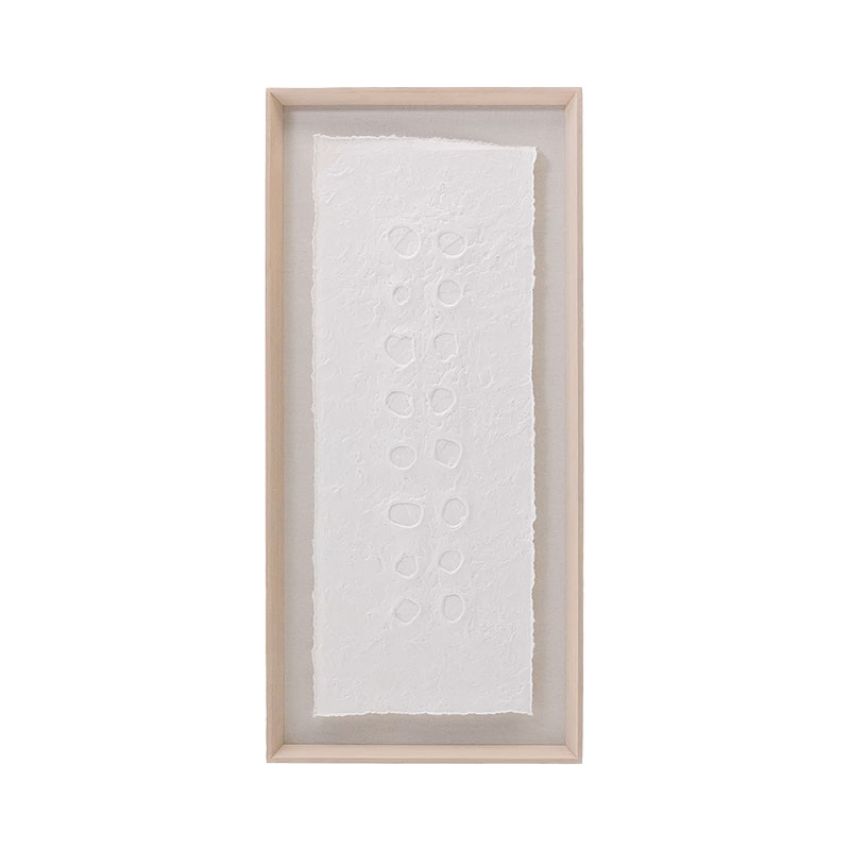 Het schilderij Olvin van Kave Home is een verfijnd en eigentijds kunstobject dat rust en karakter toevoegt aan elk interieur. Het werk is gemaakt van wit gerecycled papier en wordt gekenmerkt door unieke, handgemaakte reliëfs die zorgen voor een authentieke en ambachtelijke uitstraling.
