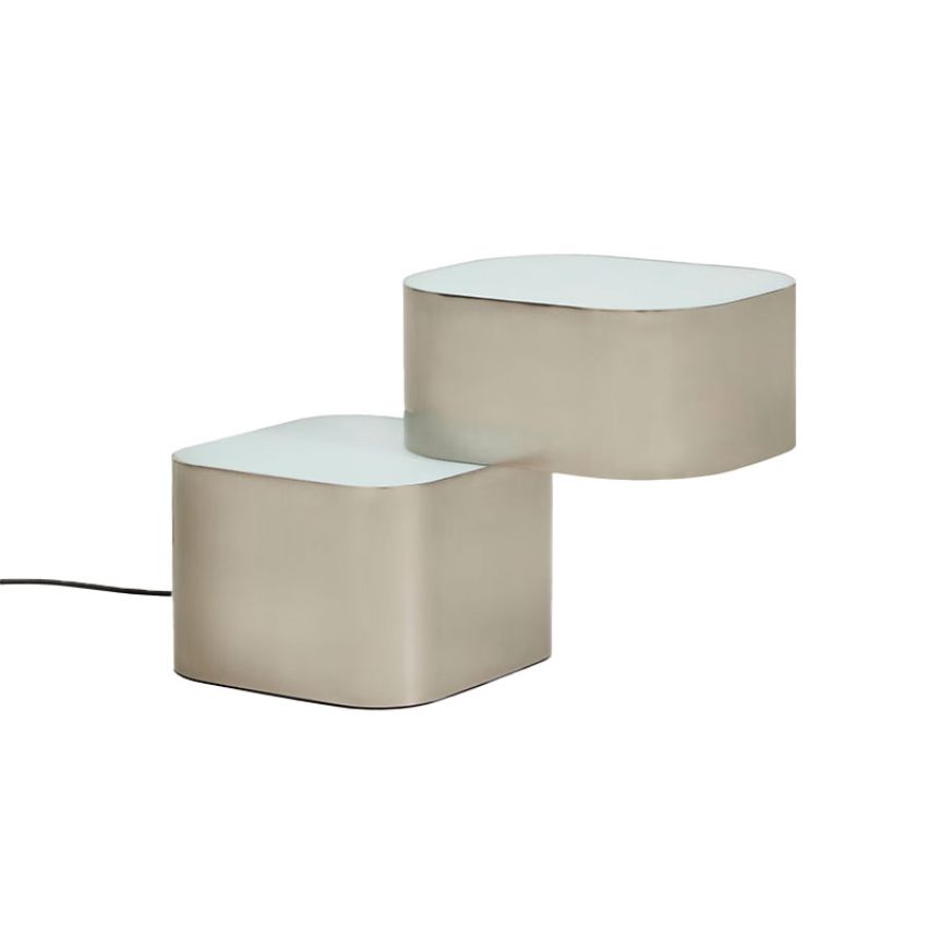 De Tandan tafellamp van Kave Home combineert elegantie en functionaliteit in een dynamisch, modern ontwerp. Het grijze metalen frame met geborstelde afwerking en de asymmetrische, gestapelde volumes creëren een verfijnde balans en visuele harmonie. De doorschijnende glazen diffusors verzachten het licht, zorgen voor een serene sfeer en voorkomen hinderlijke schittering.