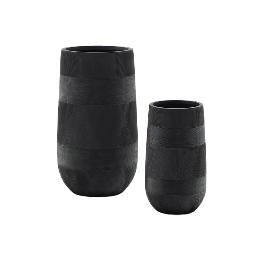 De plantenbakken zijn gemaakt van polycement, een combinatie van hars en steenpoeder, waardoor hij het uiterlijk van steen krijgt met een lichte en duurzame constructie. Dit maakt hem eenvoudig te verplaatsen en zorgt voor een lange levensduur.
