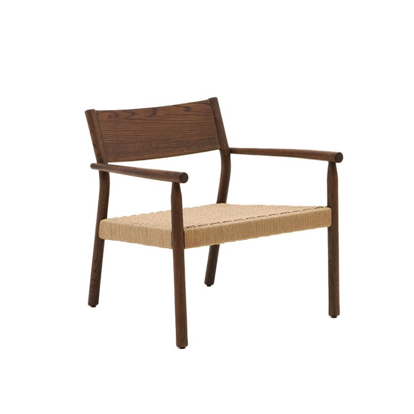 De Yalia fauteuil van Kave Home is een ambachtelijk ontwerp dat natuurlijke materialen en tijdloze stijl combineert. Het massief FSC gecertificeerd eikenhouten frame met een handgevlochten zitting van papiertouw zorgt voor een warme, rustieke uitstraling en brengt de natuur subtiel in je interieur.