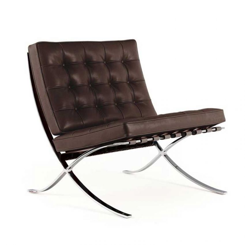 De Knoll International Barcelona Chair heeft een iconisch design. Het sierlijke frame is gevormd uit chroom, dat met de hand is gepolijst tot een spiegelachtige finish. De rugleuning en de zitting zijn verweven met banden van leer, welke geverfd zijn in eenzelfde kleur als de zitkussens. Alle vlakjes van de Barcelona fauteuil worden met de hand gezoomd en voorzien van knopen, alles uit één stuk leer. Binnenin de fauteuil wordt extra comfort gecreëerd door schuim en extra watten. De Barcelona fauteuil kan worden vervaardigd van diverse leersoorten in verschillende kleuren.