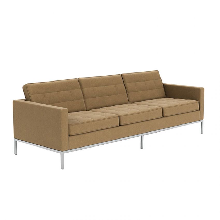 De Florence Knoll 3-Zitsbank is een ontwerp van – de naam zegt het al - Florence Knoll. De Florence heeft een strak geometrisch profiel, maar wordt opgewarmd door de rijke kleur en textuur. Door de strakke en nette uitstraling past de Florence in vrijwel ieder interieur. De Florence 3-zitsbank heeft een diepe, zachte zitting door de vulling van watten boven op het polyurethaanschuim, dit creëert extra comfort. De bank kan worden vervaardigd van diverse rijke stof- of leersoorten. Ook heeft u keuze uit verschillende kleuren. De stoffen variant heeft geen 'quilted buttons', de leren variant wel.