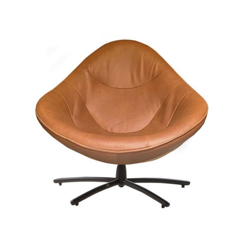Uit voorraad leverbaar in leder Rugby Cognac, onderstel (draai/swivel) in zwart/grijs.