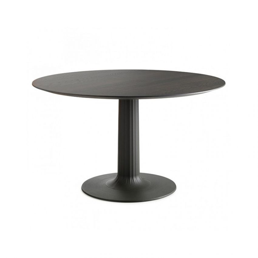Een voet en een tafelblad die worden verbonden door een rechte kolom, dat is de Columna van Leolux. De manier waarop de kolom aansluit op de voet is als een marmeren kolom uit de oudheid, glad of geribbeld. De eettafel is leverbaar in diverse kleuren en uitvoeringen.
