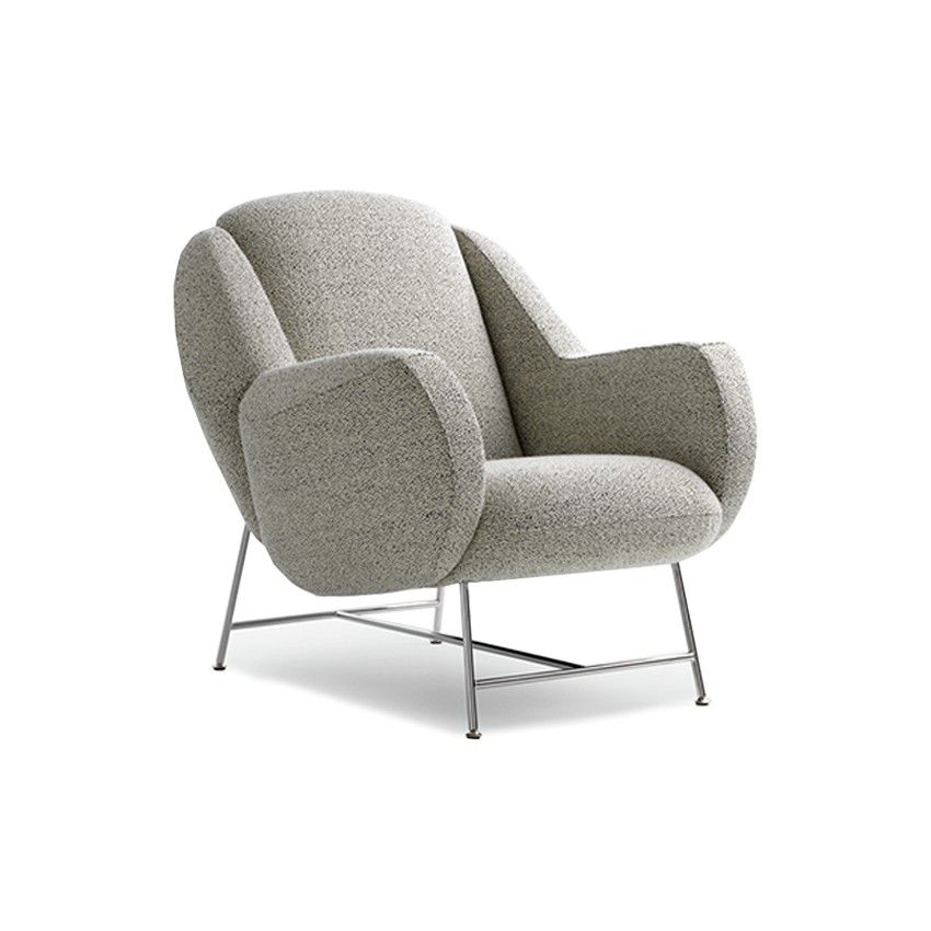 Zoals getoond, uitgevoerd in de stof Mondo Forum (002) met een onderstel in chroom.