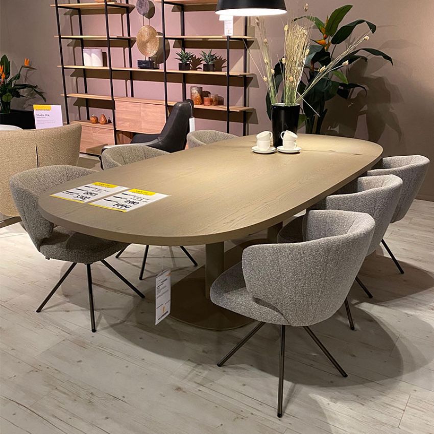 Eettafel Toveri van het merk Leolux uitgevoerd in een eiken beits.