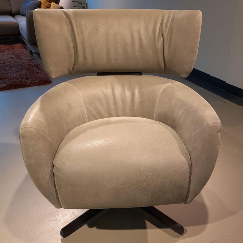De Montis George fauteuil is uitgevoerd in leder Trinidad Dark Olive met een onderstel in carbon gekleurd eikenhout.