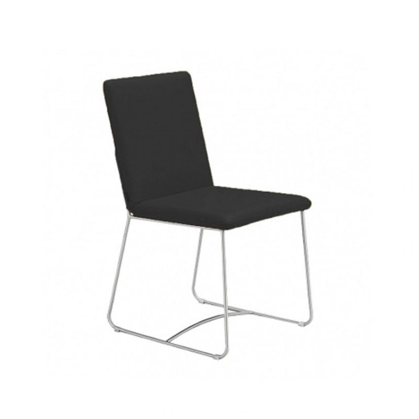 Ranke moderne eetkamerstoel uitgevoerd in dik zwart leder. Alleen leverbaar als getoond.