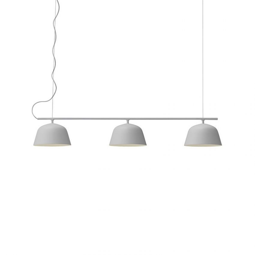 Hanglamp Ambit Rail van Muuto is ontworpen door TAF Studio. Deze robuuste lamp heeft een modern, eenvoudig ontwerp. De Ambit Rail bestaat uit drie lampenkappen die verbonden zijn met een buis. De minimalistische lamp is opvallend en vriendelijk dankzij de combinatie van rechte lijnen en ronde vormen.