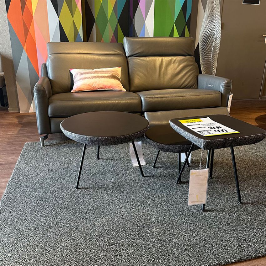 De bijzettafelset Pavia / Pisa / Siena bestaat uit 3 tafeltjes uitgevoerd in een combinatie van leder en stof.