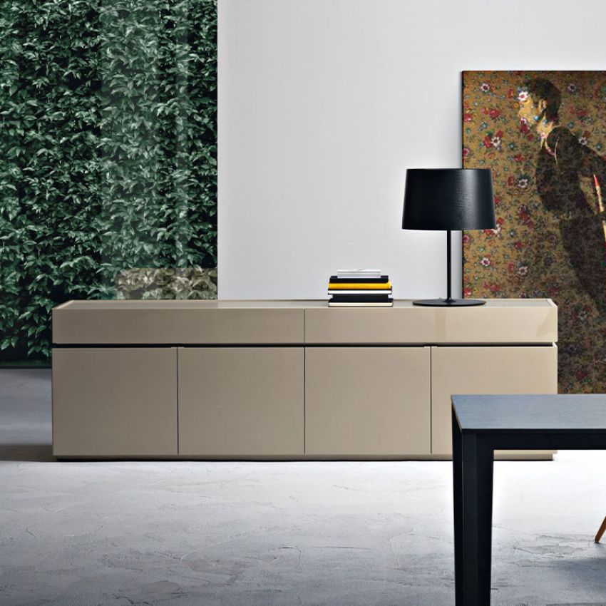 Het Cidori dressoir van Sangiacomo heeft een strak en elegant design. Net als bij de wandkast vallen de 45° verstekverbindingen op, die zorgen voor een verfijnd lijnenspel en een hoogwaardige afwerking. Bij het dressoir kan deze hoekafwerking zowel op de frontpanelen als op de achterzijde worden toegepast, waardoor het meubel vanuit elke hoek een perfect afgewerkt geheel vormt.