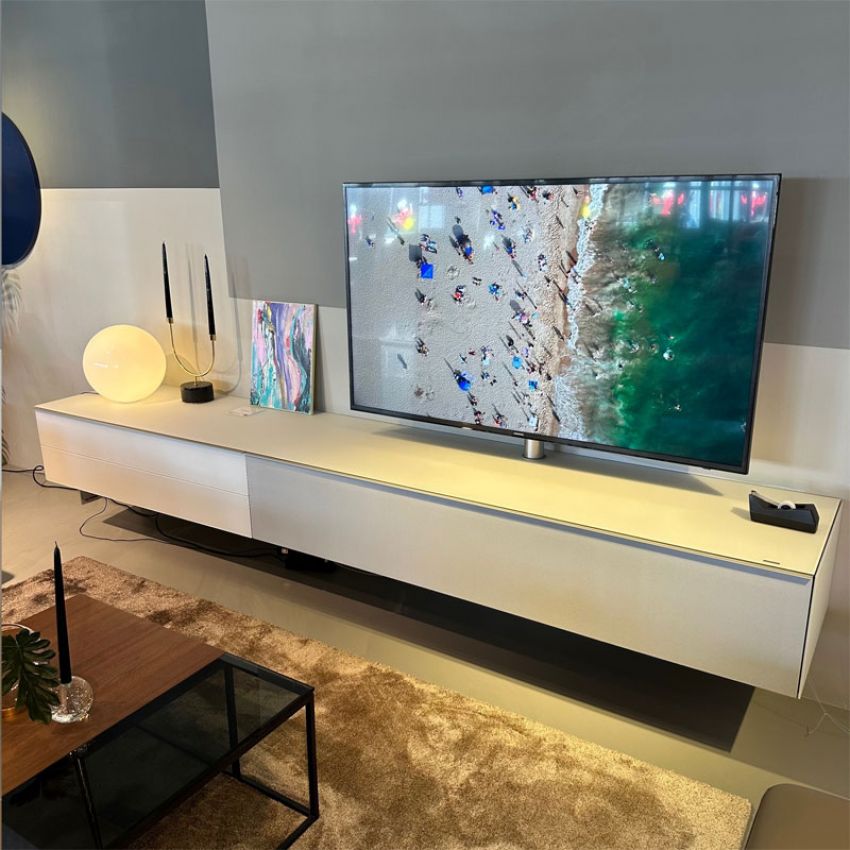 Het Spectral Scala tv-meubel is uitgevoerd in de kleur 'Snow Satiniert'.
