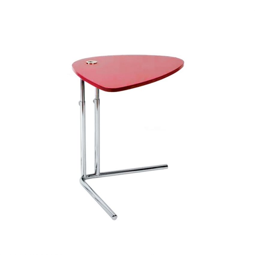 Stijlvolle bijzettafel K22L van Tecta is uitgevoerd met een in hoogte verstelbaar blad in rode lak. De K22L is ook in andere kleuren leverbaar.