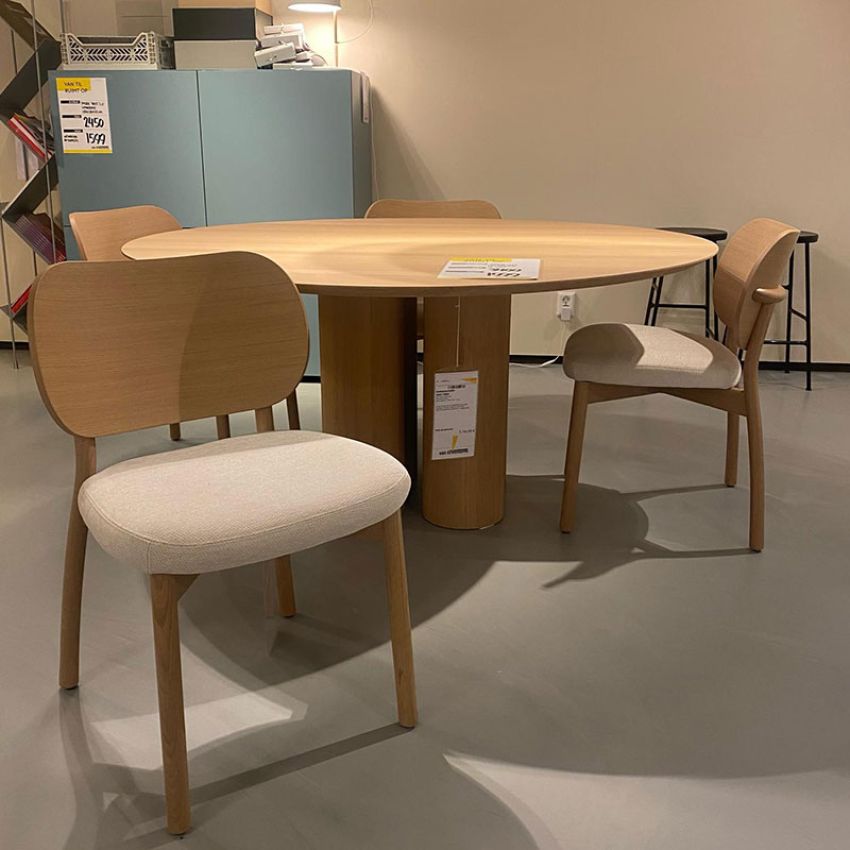 Set van 4 eetkamerstoelen Tonon Eli, uitgevoerd in de stof I'm sustainable 4A1. Onderstel eiken naturel.