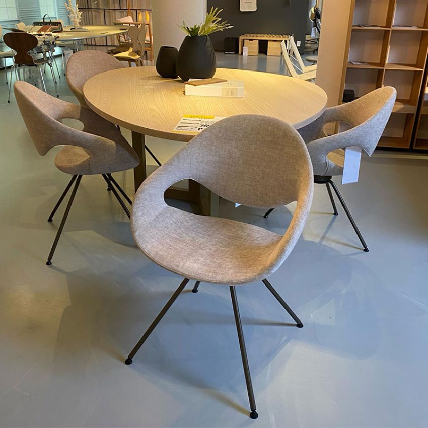 Set van 4 eetkamerstoelen Tonon Moon, uitgevoerd in de stof Velvy. Van de 4 stoelen, is er 1 draaibaar.