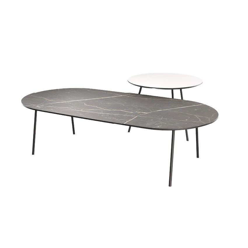 De Topform Belice blinkt uit dankzij het praktische en stijlvolle tafelblad, uitgevoerd in een twee verschillende vormen. Samen vormen deze twee salontafels een speelse tafelset voor bij de zithoek. Door met twee tafeltjes te werken creëert u voldoende afzetruimte, maar blijft het geheel ook luchtig.