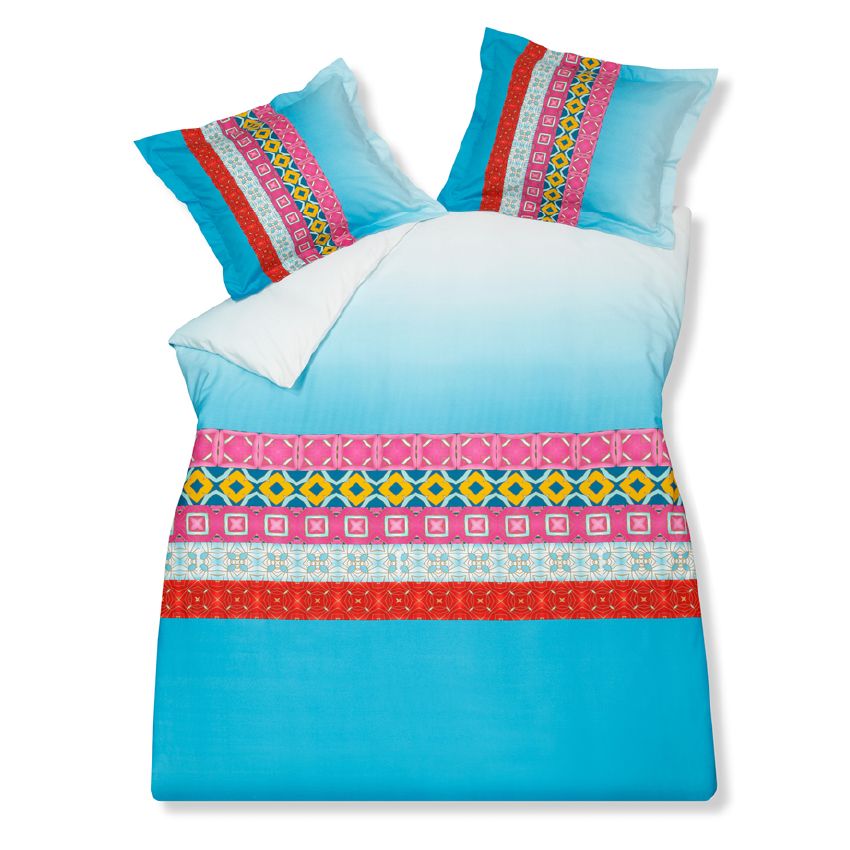 Het dekbedovertrek 'Colorbeat' in de kleur Teal Blue van Vandyck is een echte blikvanger. De combinatie van felle kleuren, geometrische patronen en een frisse blauwe basis geeft uw slaapkamer een vrolijke en moderne uitstraling. Gemaakt van zacht katoensatijn met een hoogwaardige afwerking, voelt dit overtrek aangenaam aan op de huid en blijft het langdurig mooi na veelvuldig wassen.