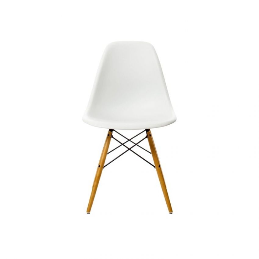 De iconische eetkamerstoel DSW is een ontwerp van het designduo Eames uit 1950. Dit design heeft een warme, ongedwongen uitstraling dankzij de combinatie van een organisch gevormde kunststof zitschaal en het houten onderstel.